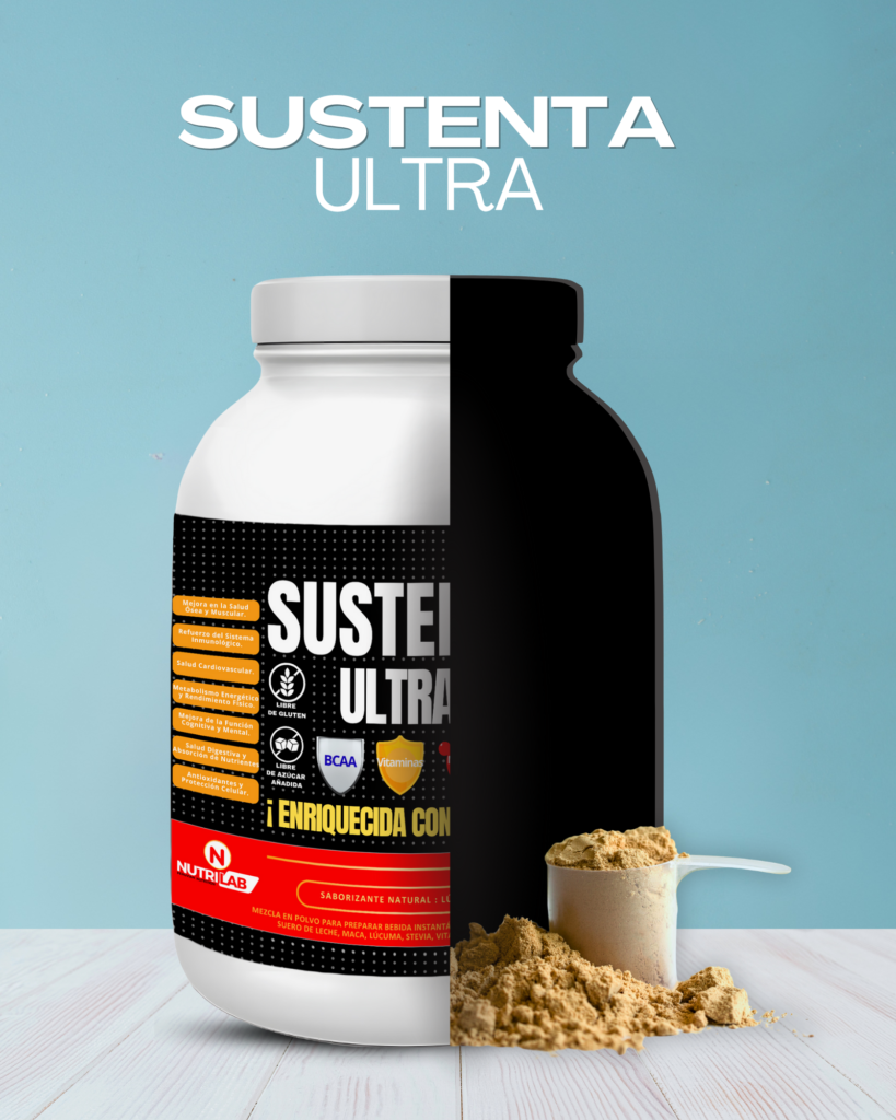 SUSTENTA ULTRA es un soporte nutricional diseñado para acompañar (no reemplazar) el tratamiento farmacológico. Actúa como un aliado silencioso que ayuda al organismo a resistir, asimilar y recuperarse mejor frente a la carga de fármacos, el estrés metabólico y la pérdida de masa muscular, aportando proteína de alta biodisponibilidad, carbohidratos funcionales, con baja carga de azúcar natural dado en el suero de leche y un premix de vitaminas y minerales que cubre cerca del 40 % del IDR por ración (NRV-R Codex).